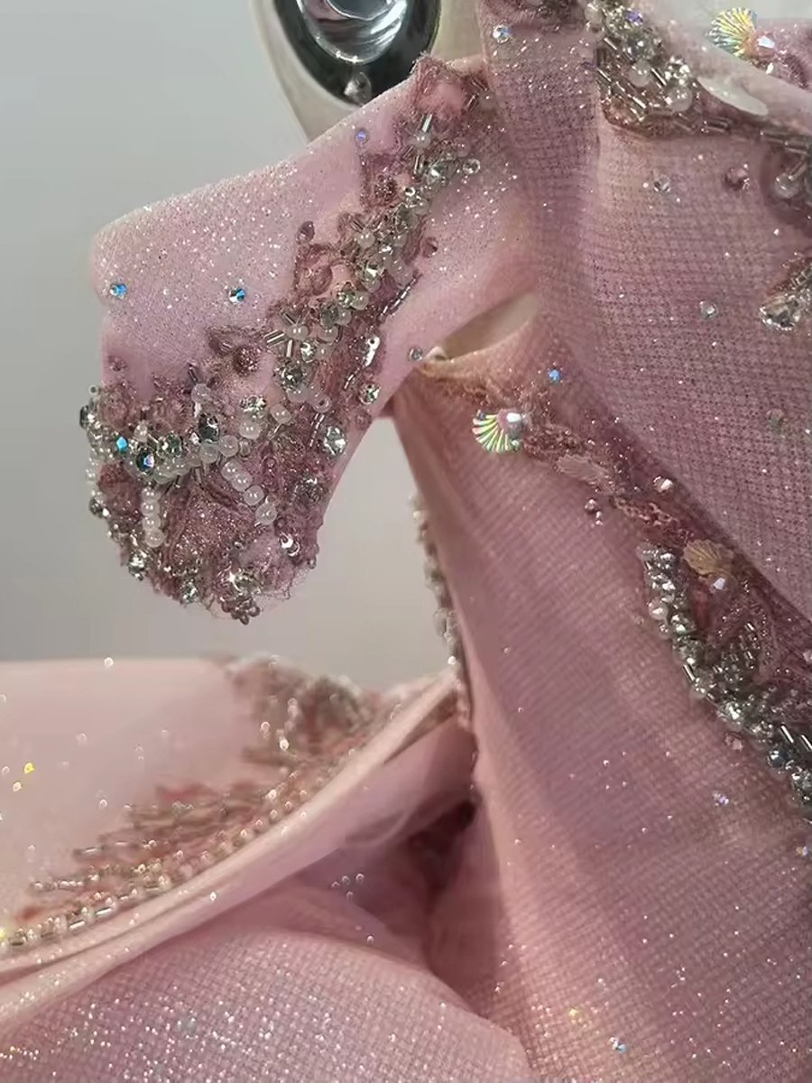 Shimmering Pink Sequin Crystal Off Shoulder Quinceanera Dress Sweetheart Big Bow Ball Gown Corset Gown