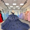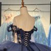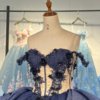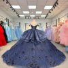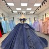 Sparkling Navy Blue Quinceanera Ball Gown Off Shoulder Beaded Corset Tulle Sweet 16 Dress With Train