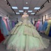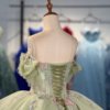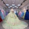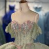 Sparkling Sage Green Floral Sequin Ruffles Quinceanera Dress Off Shoulder Ball Gown Sweetheart Corset Gown