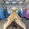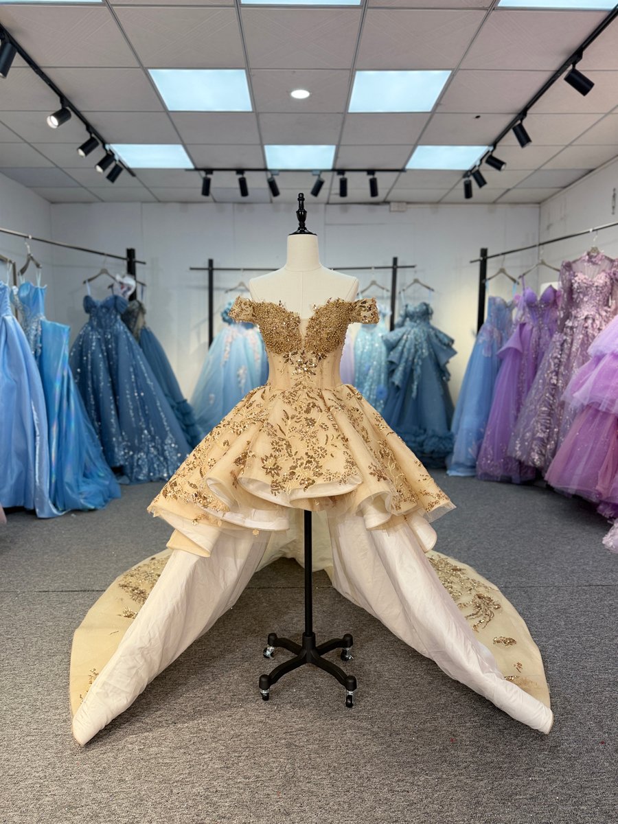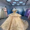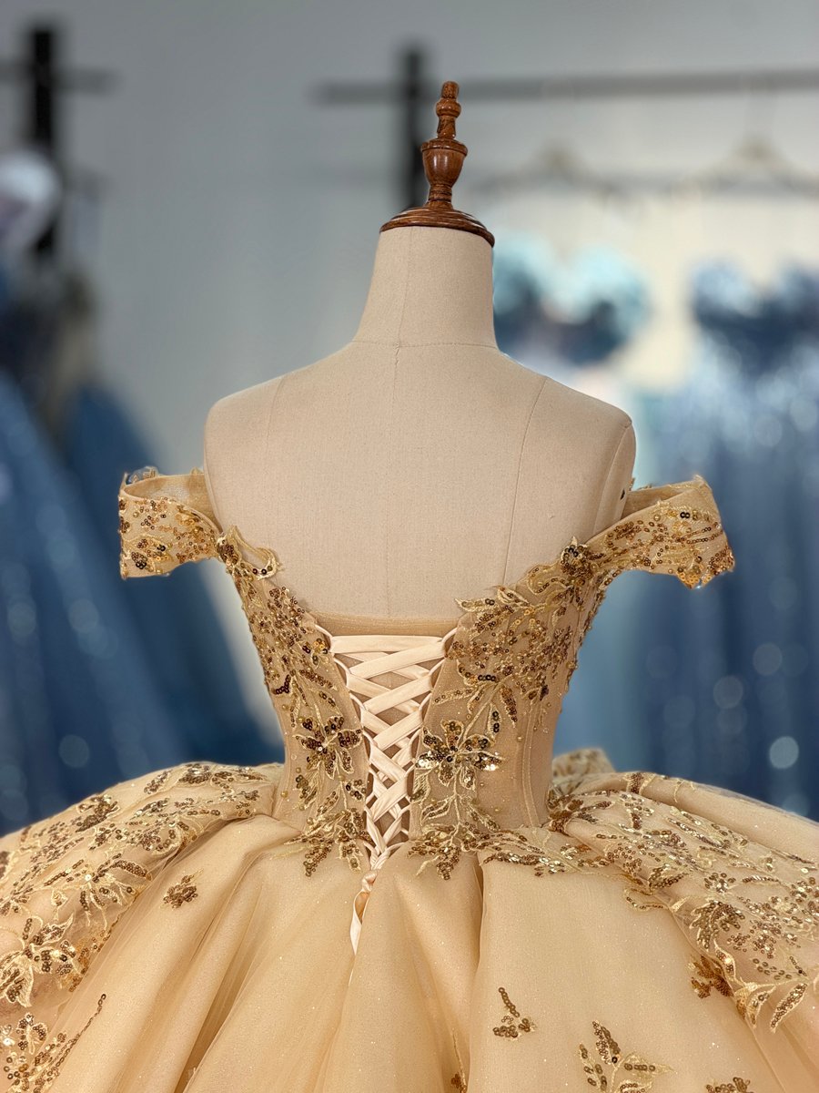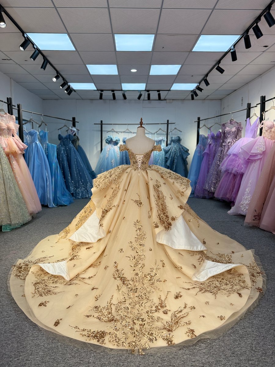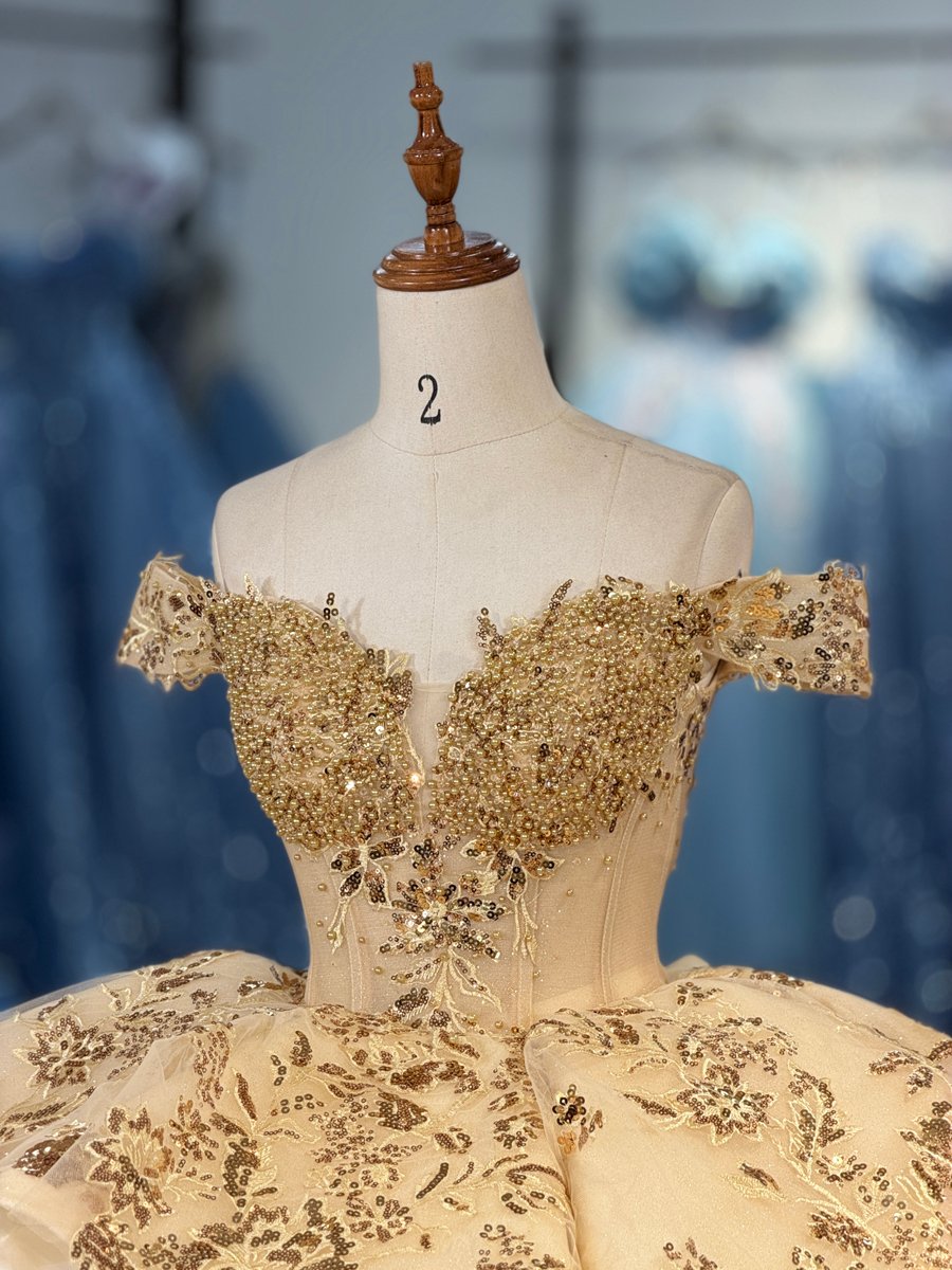Stunning 2 in 1 Champagne Quinceanera Dress Cold Shoulder Beaded Sequin Quinceanera Dress Peplum Ball Gown Luxury Birthday Gown