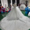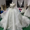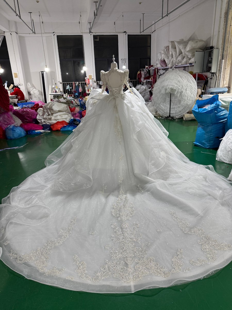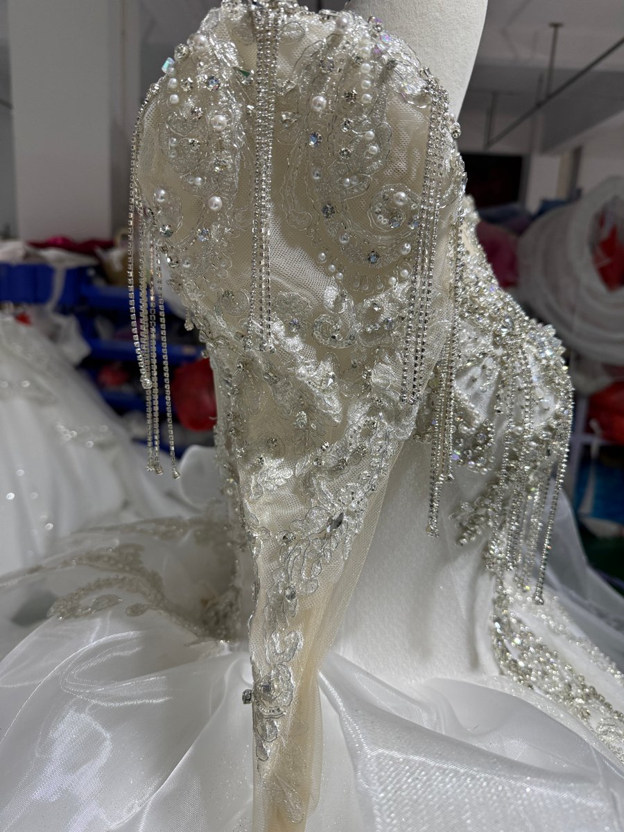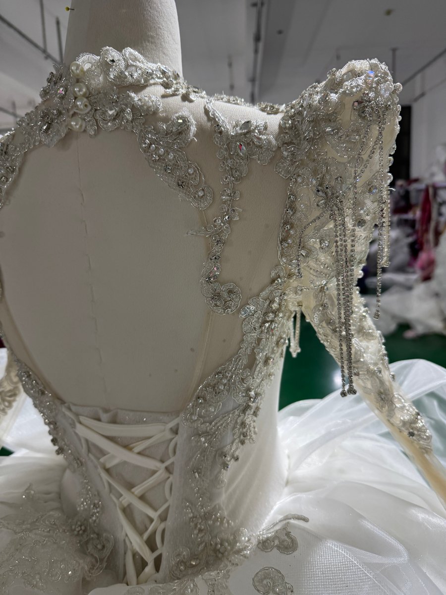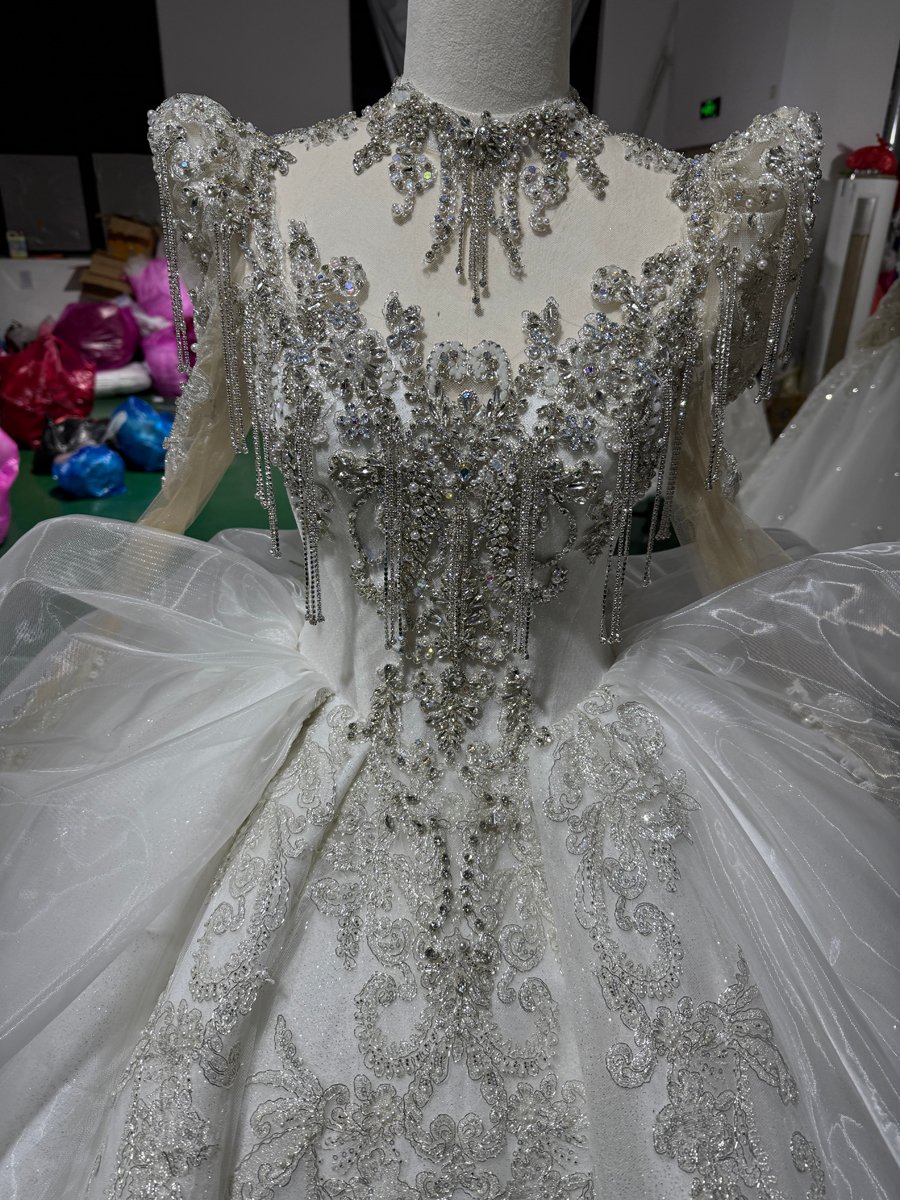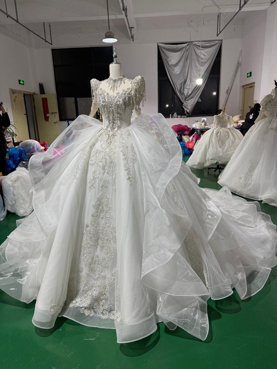 Stunning Ivory Wedding Dress High Neck Long Sleeve Ruffle Tiered Wedding Dress Lace Applique Ball Gown Royal Bridal Gown