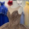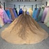 Stunning Nude Gold Sparkly Sweetheart Beaded Quinceanera Dress Ball Gown Long Train