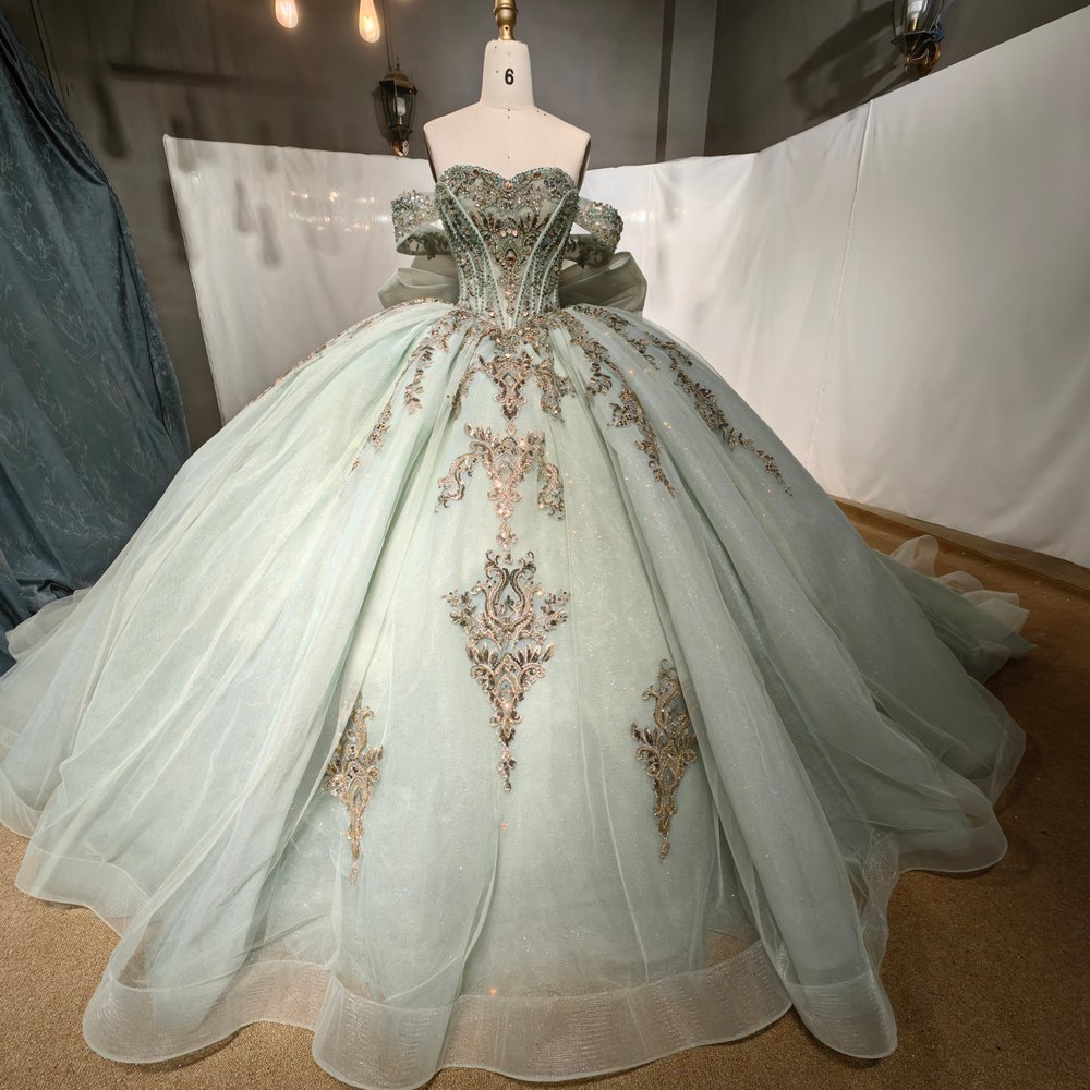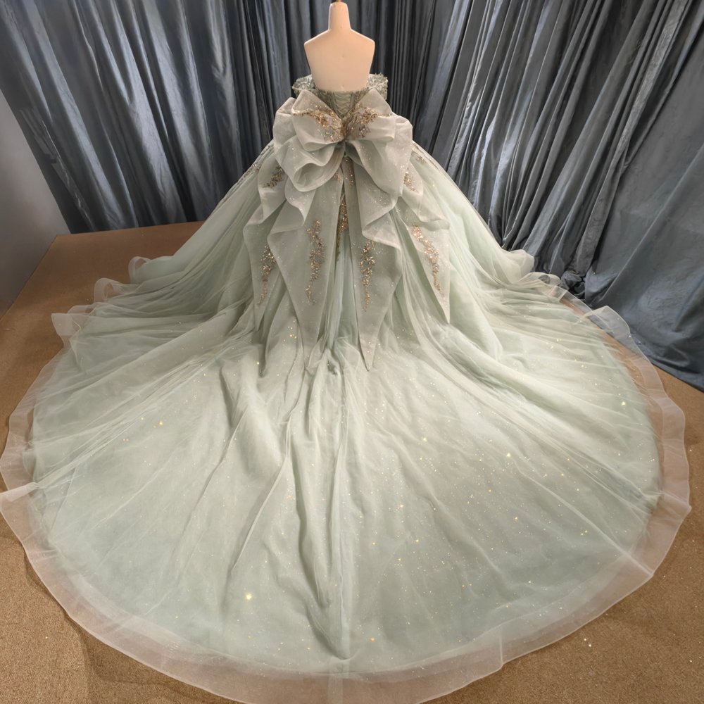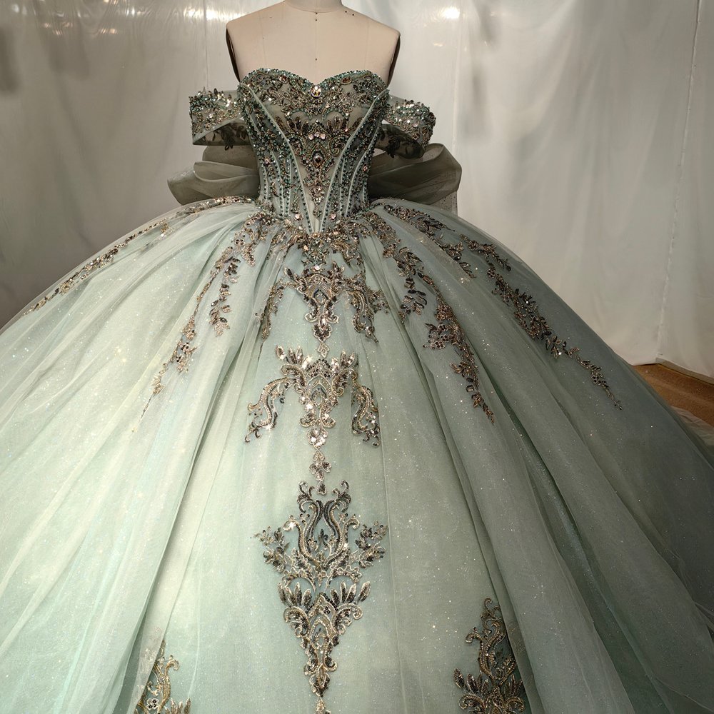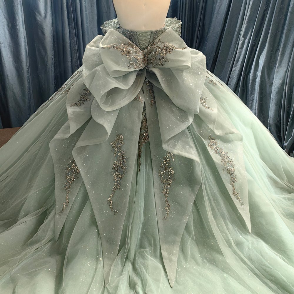 Vestidos De 15 Quinceañera Flowers Vestidos De 15 Años Green V-neck Beading Lace Evening Party Dress (Customer Link)