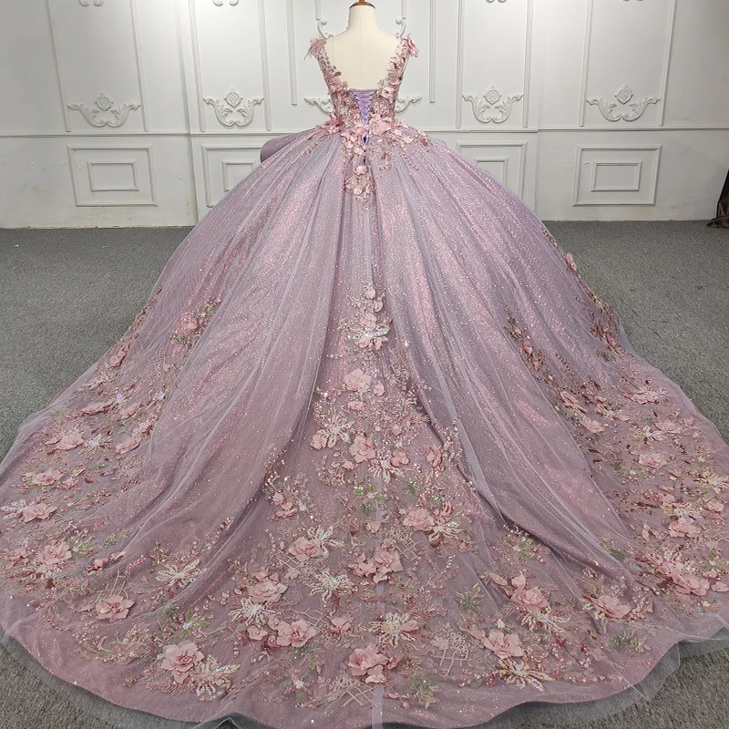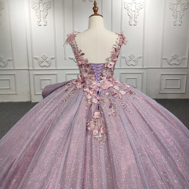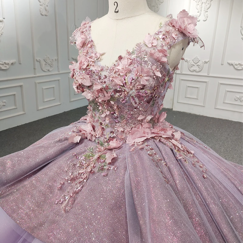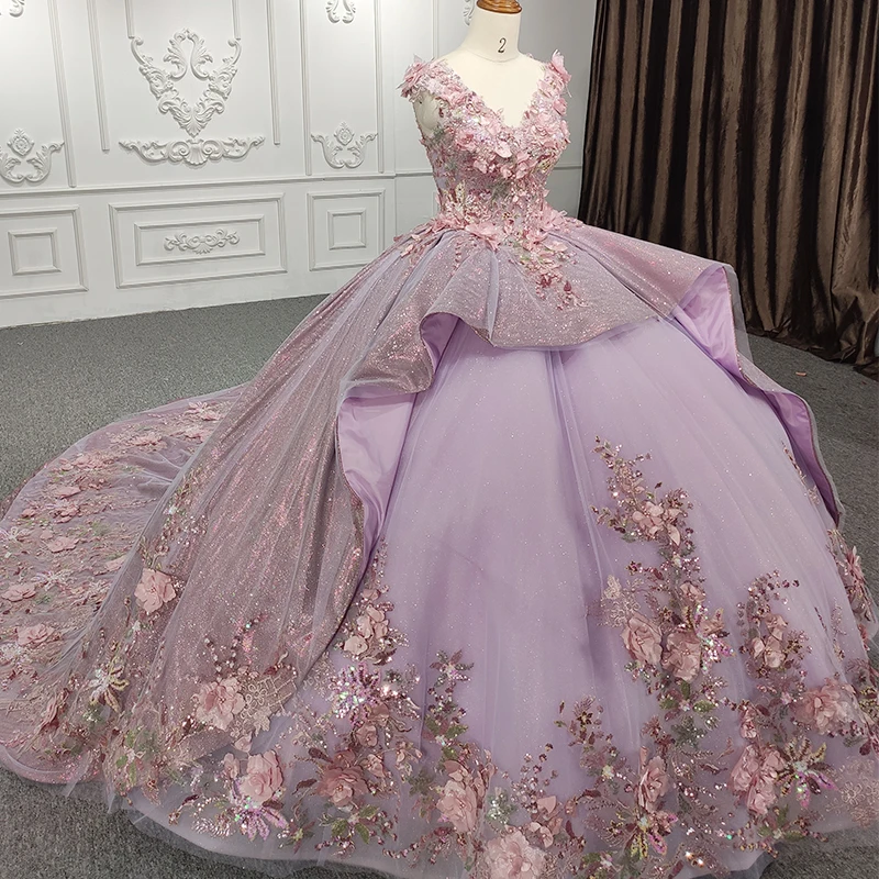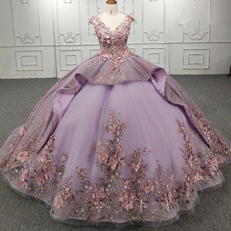 Vestidos De 15 Quinceañera Flowers Vestidos De 15 Años Purple V-neck Beading Lace Evening Party Dress 2022 DY9972 Bar Mitzvah