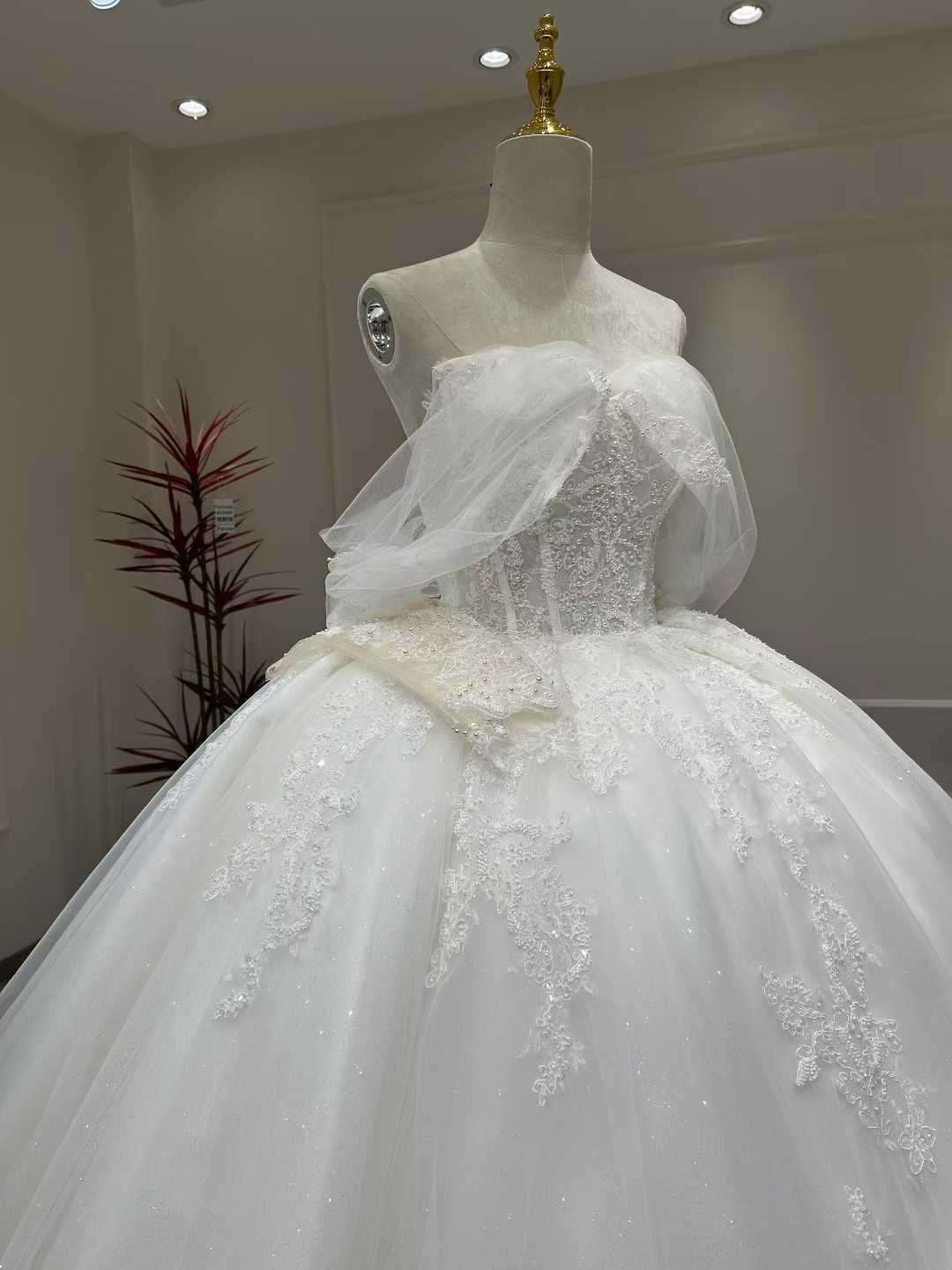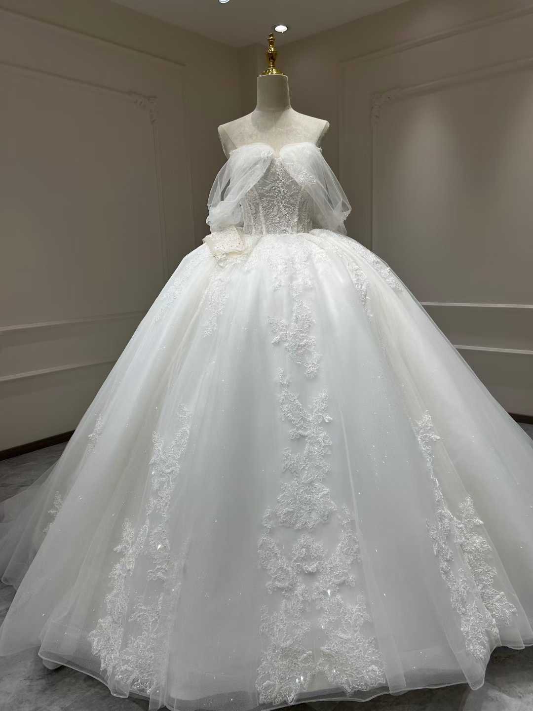 Wedding Dress Elegant Bridal Gown Flowers Vestidos De Novias (Customer Link – with Veil)