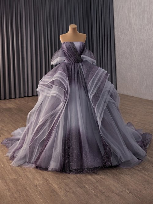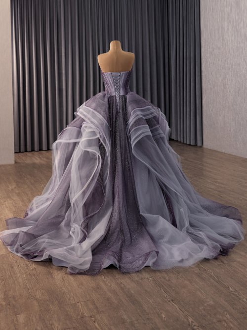 • Dramatic Ombre Purple Ball Gown Evening Dress Strapless Tiered Ruffles Lace Up Prom Gown
