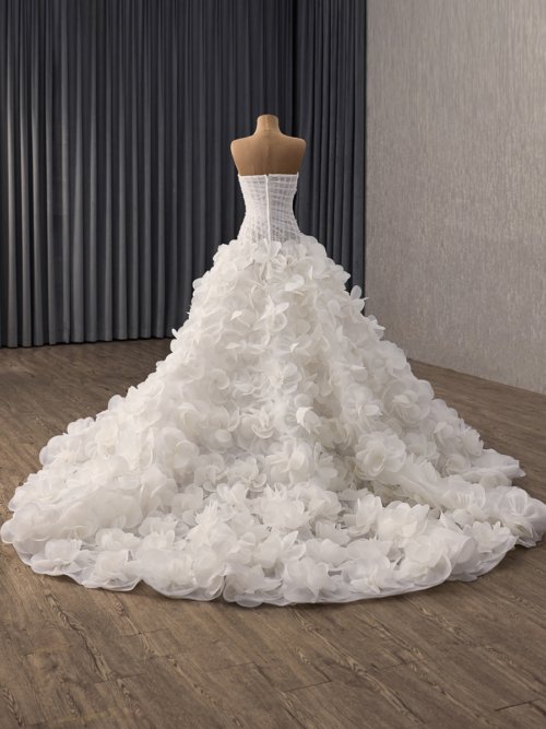 • Elegant Ivory Pearl Floral Wedding Dress Strapless Corset Organza Ball Gown Sweetheart Ruffles Gown