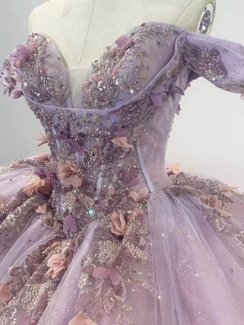 • Dazzling Purple Sequin Beaded Sweetheart Quinceanera Dress Off Shoulder Ball Gown Corset Princess Gown